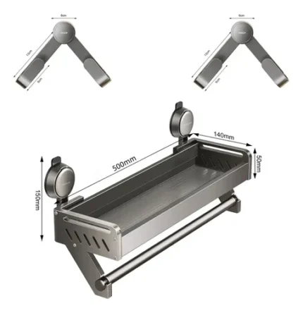 🔥 Porta Shampoo Suporte Banheiro Com Ventosa Sem Furo Prateleira Organizador Multiuso Antiferrugem Alumínio Yesop Cinza-escuro
