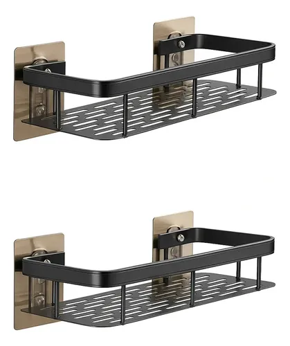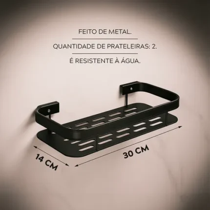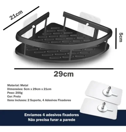 🔥 Kit 2 Suporte Porta Shampoo Sabonete Banheiro Adesivo Parede Sem Furos Box Luxo Cor Preto Brielli Home