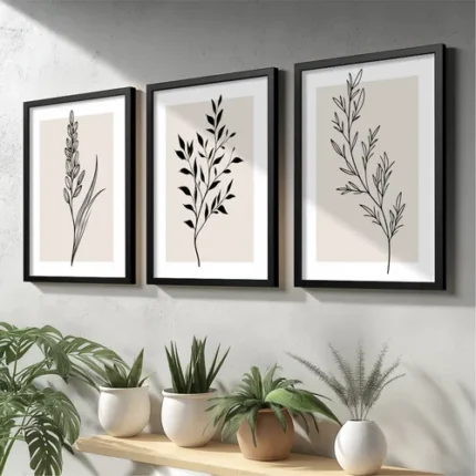 🔥 Quadro Decorativo Minimalista Floral Flores Cabeceira Sala Cor Carvalho/avelã