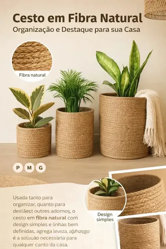 š„ 3 Cestos Organizador Rusticos Decoração Sala Quarto Liso Vaso Cachepot Palha Natural P M G Decora Ambiente Boho Cesta Com Proteção Multiuso Organização Decorativo Plantas Artificiais Ou Naturais
