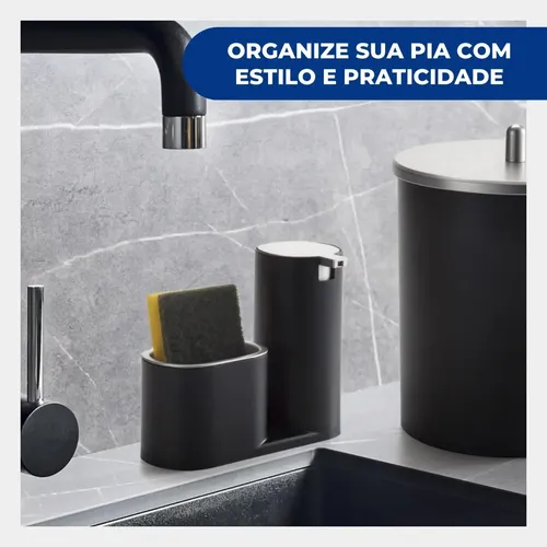 🔥 Dispenser Detergente Suporte Bucha Multiuso Cozinha Preto