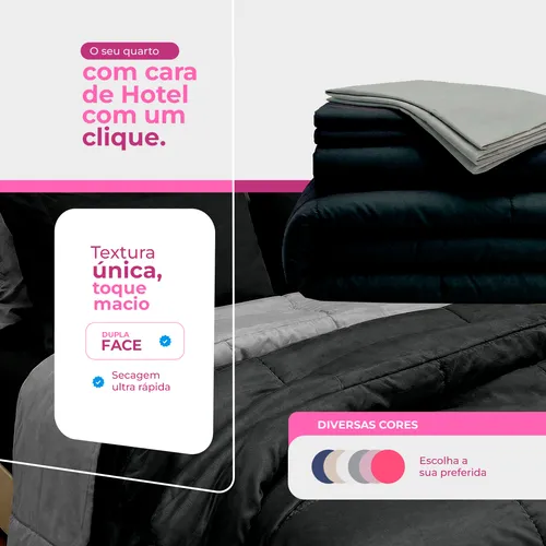 🔥 Edredom Casal Kit 6 Peças + Jogo De Lençol Queen Cinza Casa Dona O preço original era: R$219,00.O preço atual é: R$157,60.