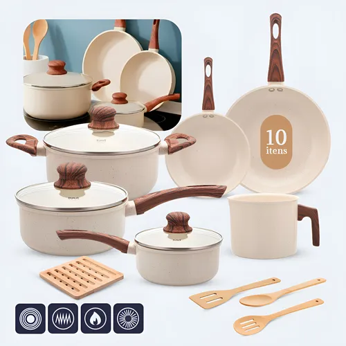 š„ Jogo De Panelas InduƧao Antiaderente CerĆ¢mica 10 PeƧas Ppg Pfoa Free Baunilha