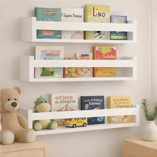 🔥 Kit 3 Prateleira Nicho Livros Infantil 50cm Branca Reforçada